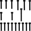 25 parafusos de aço liga (preto) da tampa lateral do motor lado esquerdo (lado estator) e lado direito (lado embreagem) e parafusos da tampa do pinhão