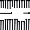 31 parafusos de aço liga (preto) da tampa lateral do motor lado esquerdo (lado estator) e lado direito (lado embreagem) e parafusos da tampa do pinhão